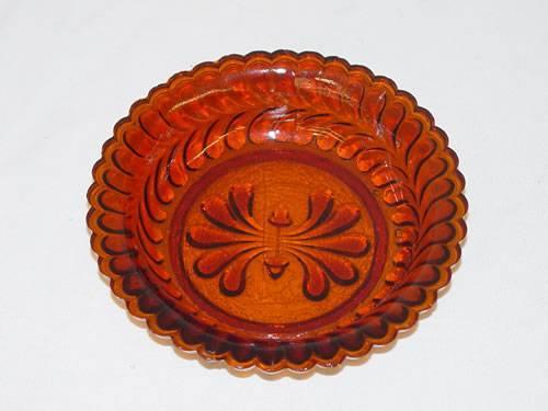 5" SANDWICH AMBER DISH W/ ACORN & LEAF DECORATION - RIM CHIPS;