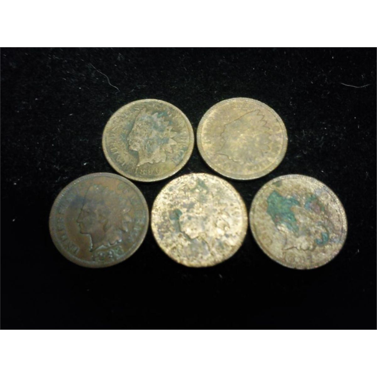 5 (SCRUFFY) INDIAN HEAD CENTS
