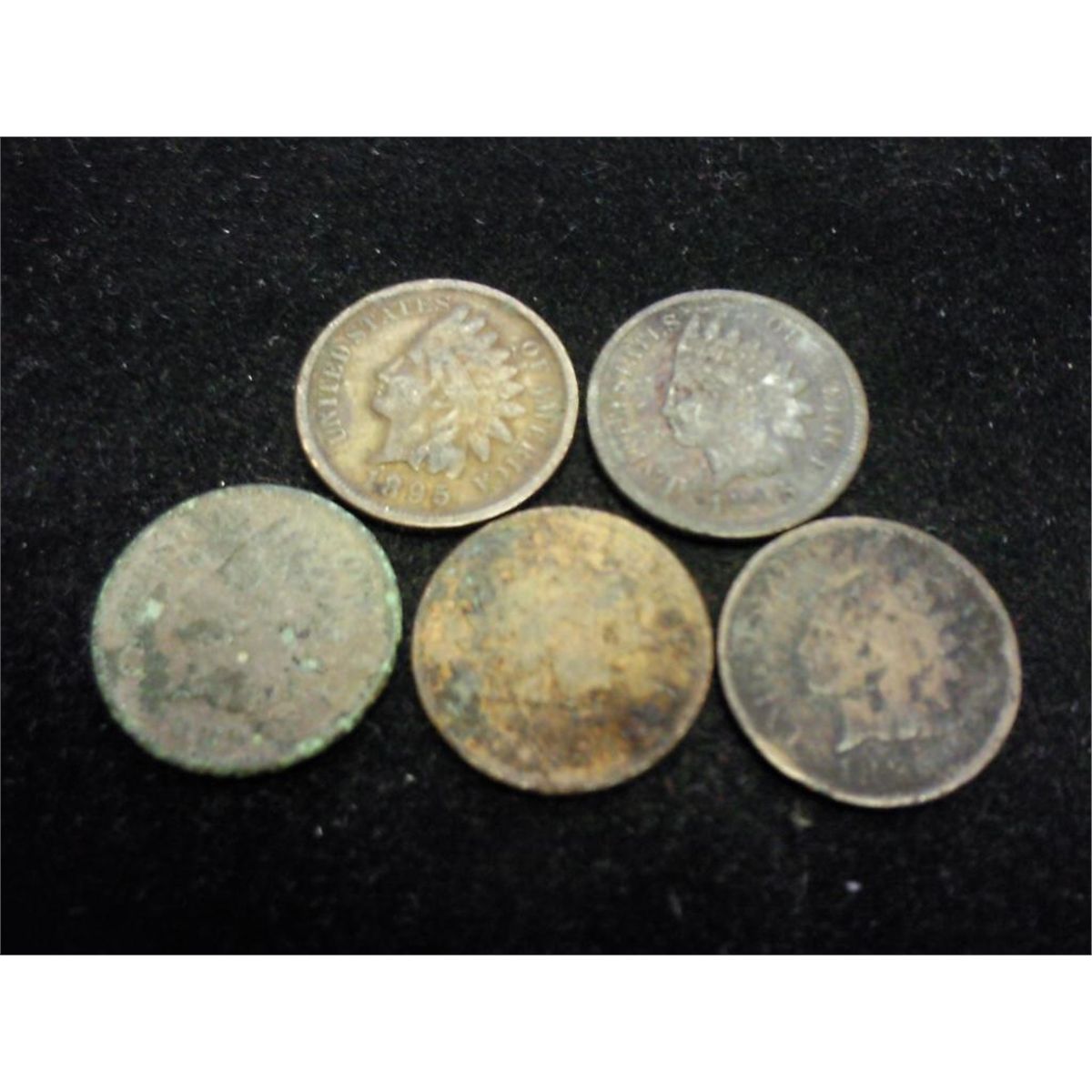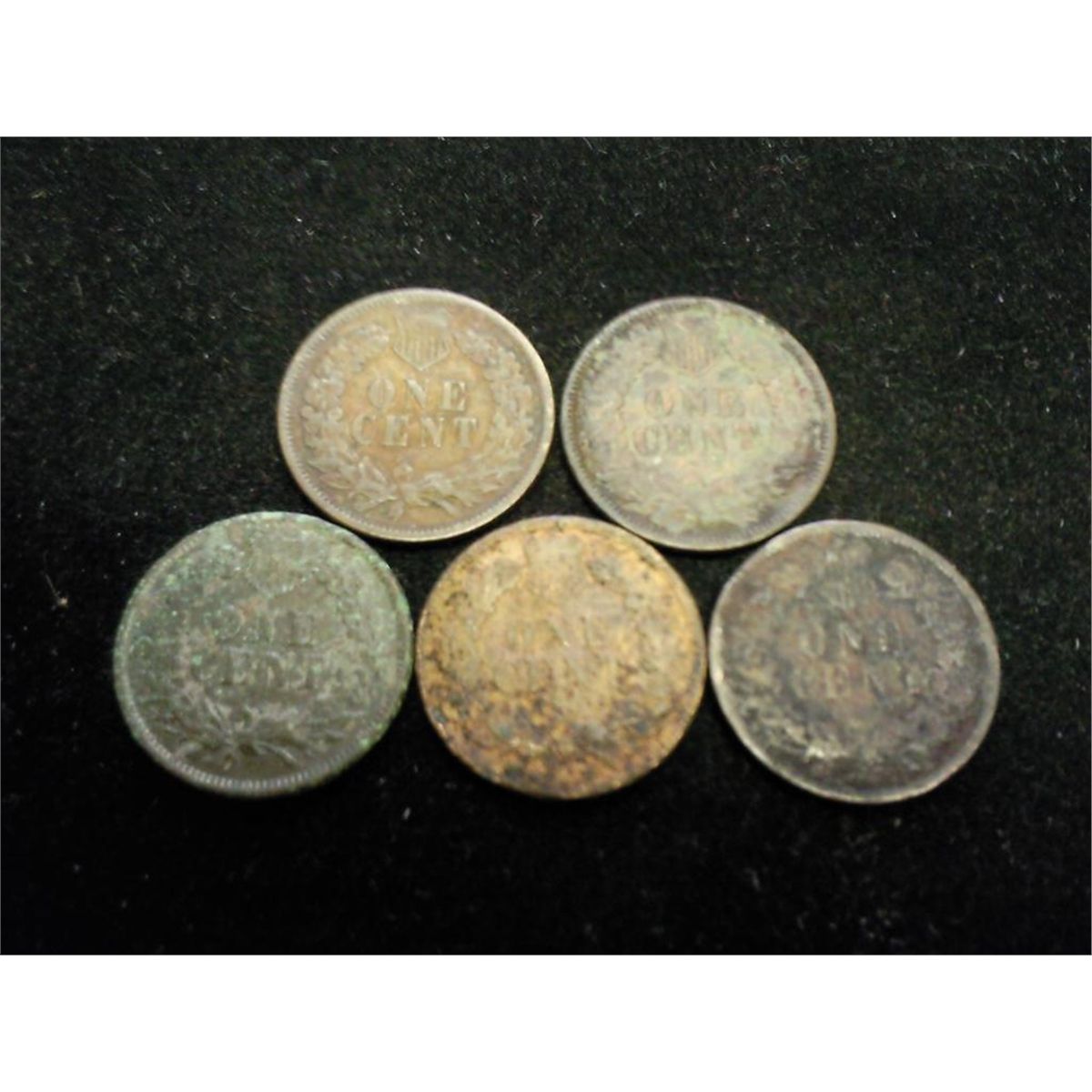 5 (SCRUFFY) INDIAN HEAD CENTS