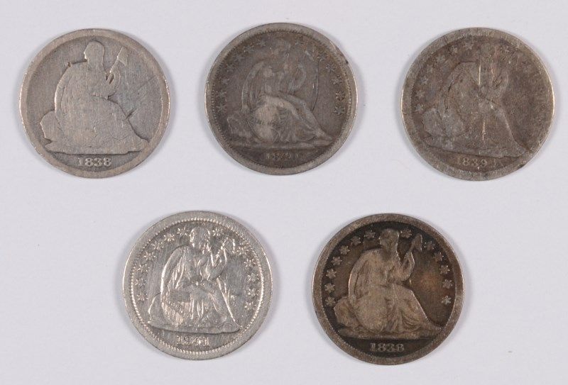 (5) SEATED DIMES (38, 38-O, 39, 40, 41)