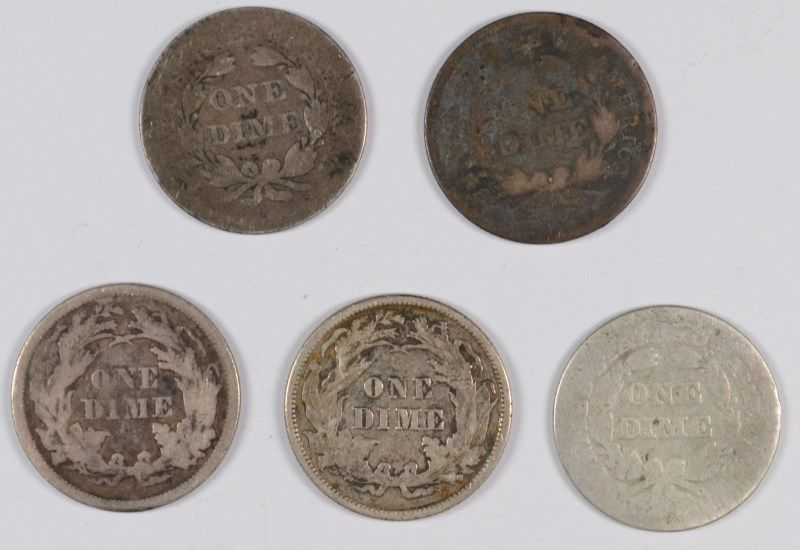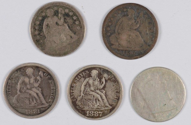 (5) SEATED DIMES (40-O, 56, 57, 73, 87)
