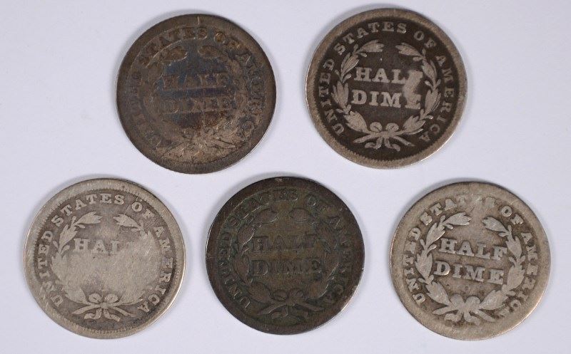 (5) SEATED HALF DIMES (38, 39-O, 40-O, 41, 43)