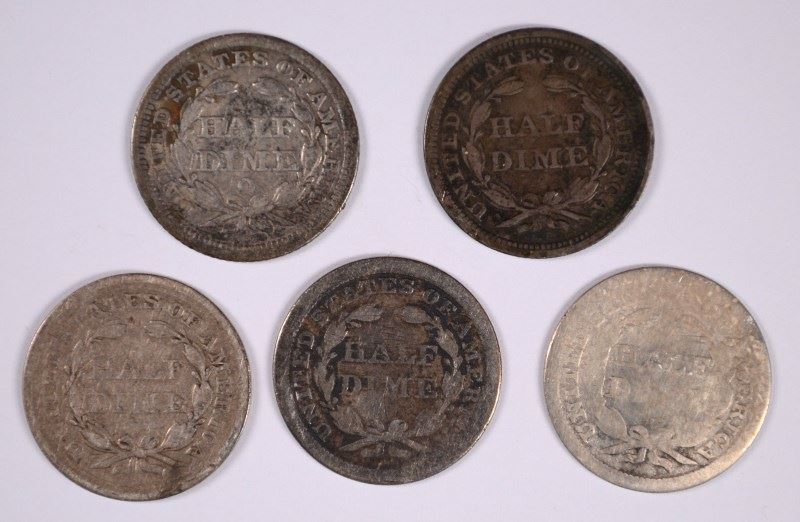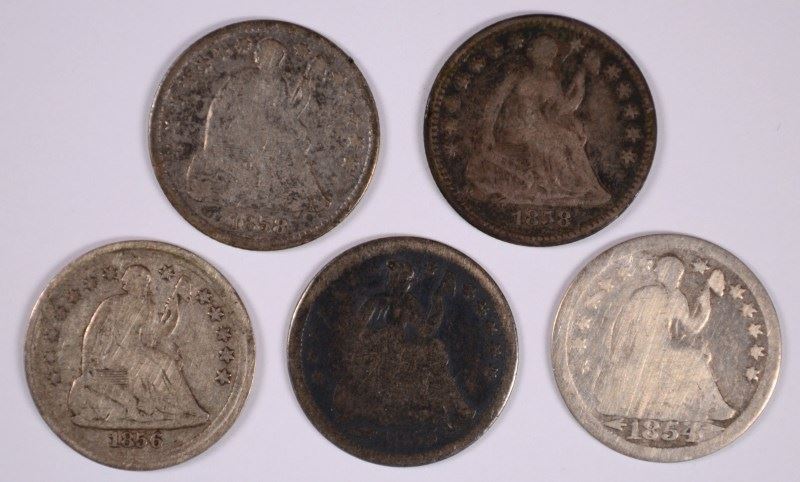 (5) SEATED HALF DIMES (54, 55, 56, 58, 58-O)