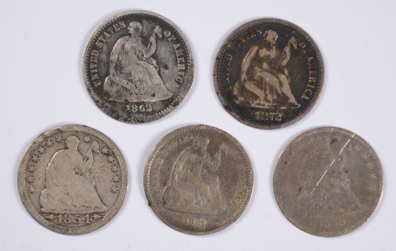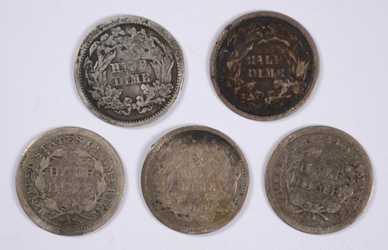 (5) SEATED HALF DIMES (59, 61, 62, 72, 54)
