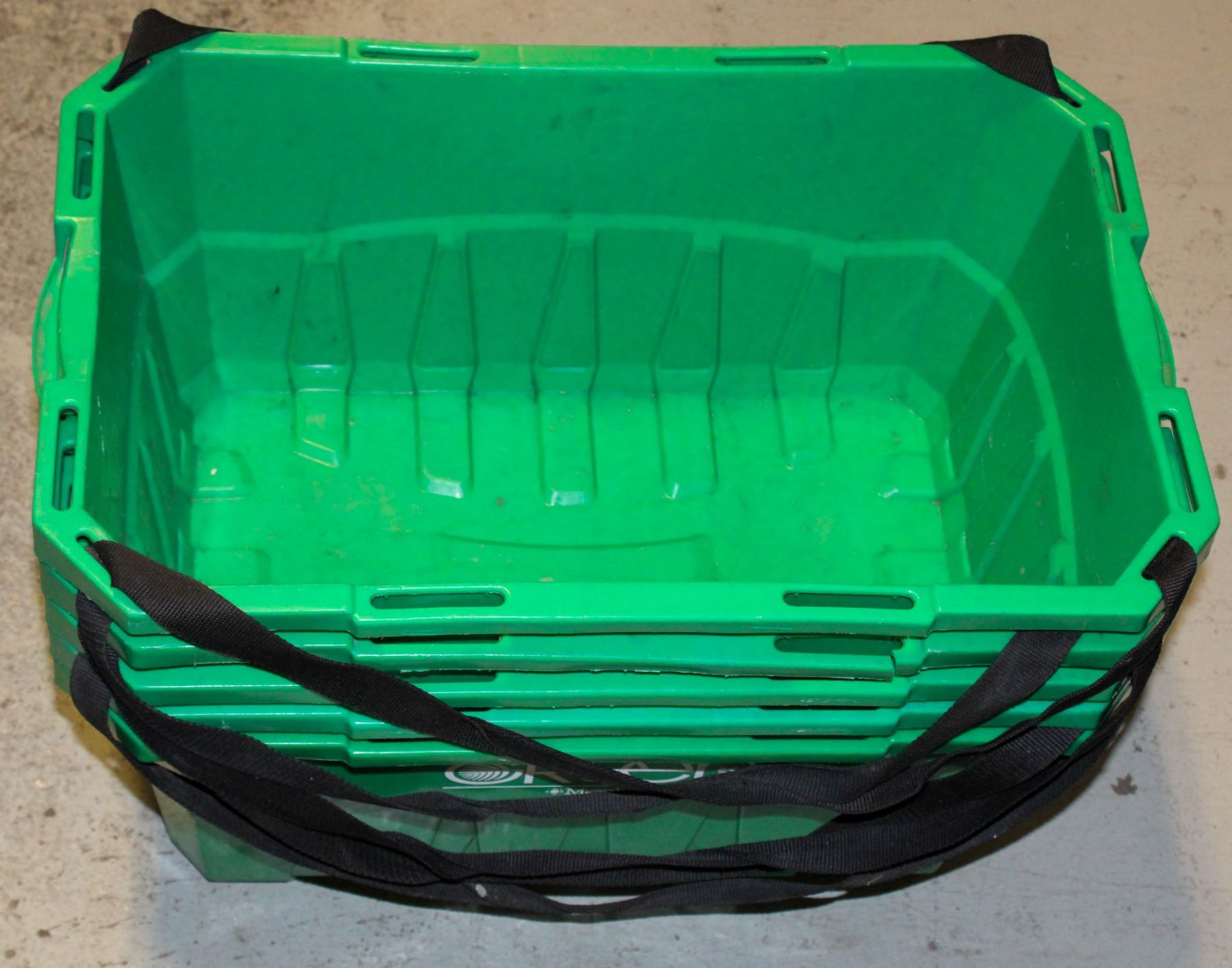 5 SHOPPING GREEN BASKETS PLASTIC BINS