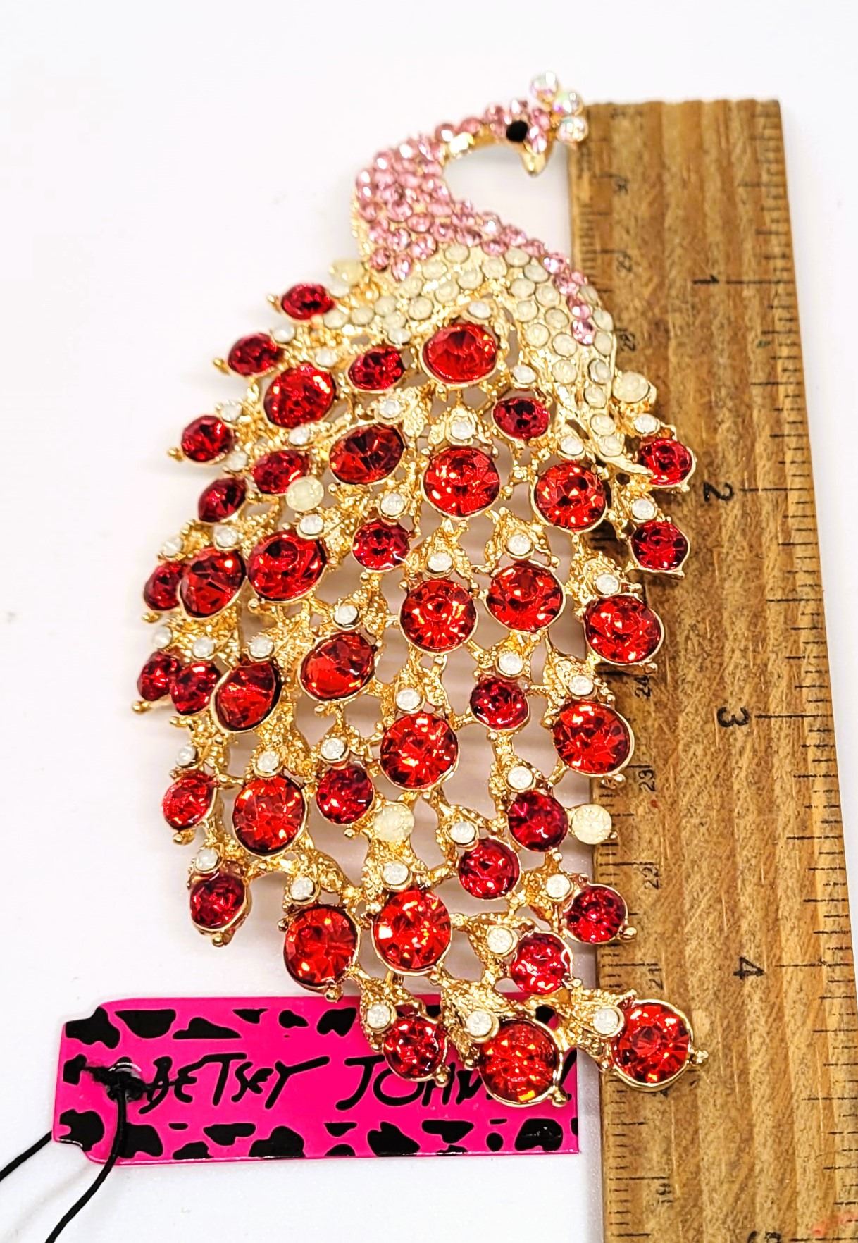 CLEAR RHINESTONES PEACOCK PENDANT/BROOCH FROM DESIGNER BETSEY JOHNSON. JEWELLERY
