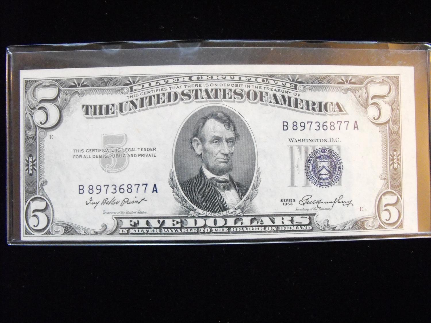 $5 SILVER CERTIFICATE 1953 UNCIRCULATED