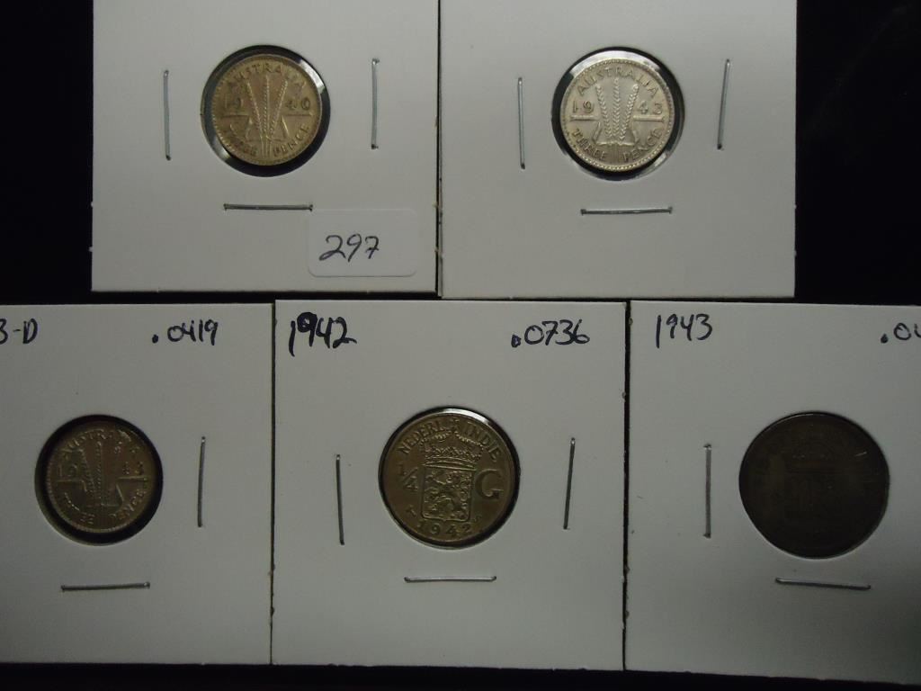 1940,43 & 43-D AUSTRALIA 3 PENCE AND 1942 NETHERLAND INDIES 1/4 GULDEN AND 1943 GREAT BRITAIN 6 PENCE