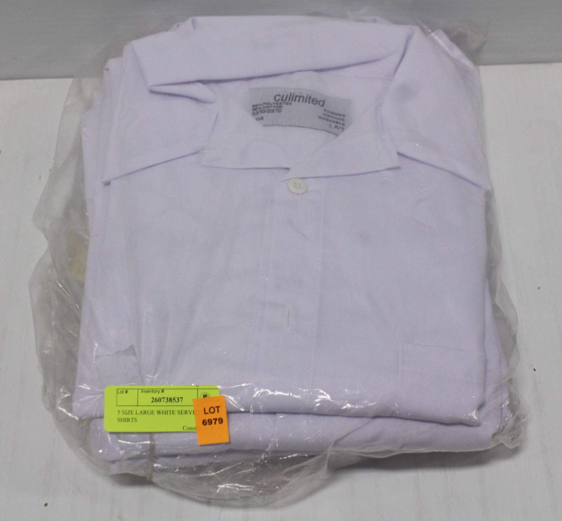 5 SIZE LARGE WHITE SERVICE WORK SHIRTS