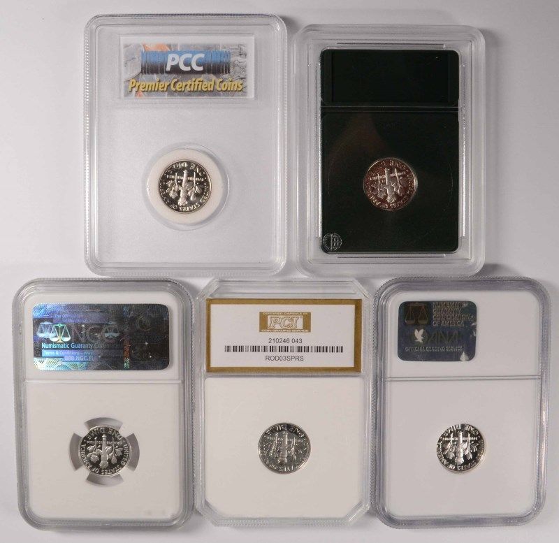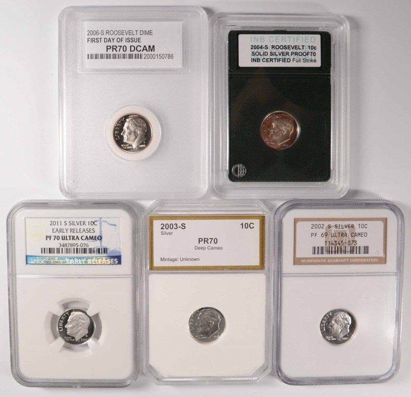 (5) SLABBED PROOF ROOSEVELT DIMES (02-S, 03-S, 04-S, 06-S, 11-S)