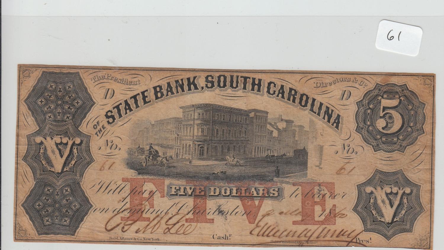 $5 SOUTH CAROLINA OBSOLETE 1860