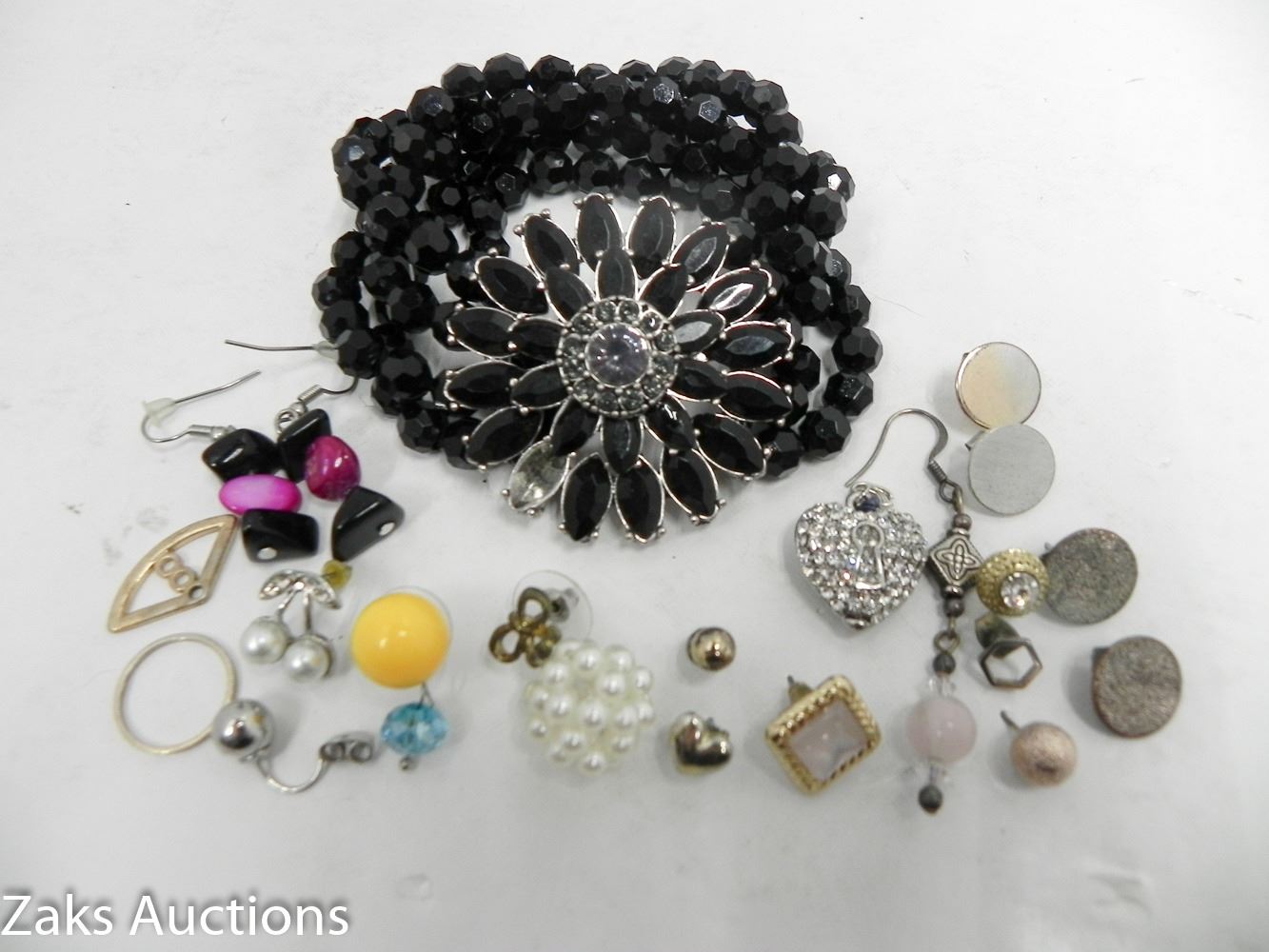 BLACK/PINK EARRINGS AND MISC STONES, STUDS, ETC