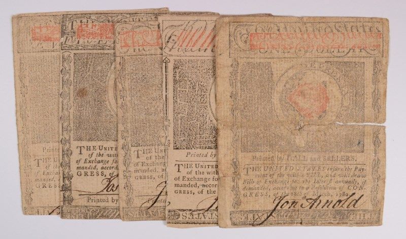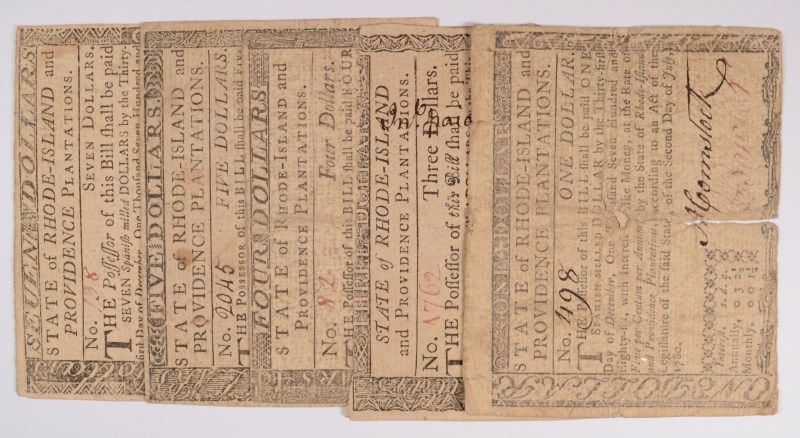 (5) STATE OF RHODE ISLAND COLONIAL NOTES ($1, $3, $4, $5, $7)