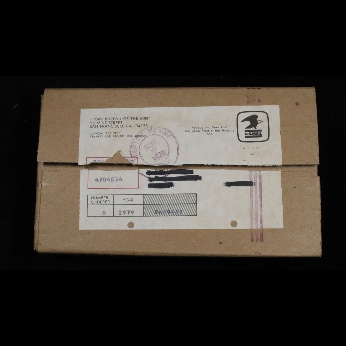 5 Sealed 1979 Mint Set In Original Government Packaging Never Opened . .. never opened 5 sets ultra rare. Never before opened WOW. 1979-d Half is $565 in ms67. 1979-p Dollar is $165 in ms67 and 1458 in ms68. also the 79-p Wide Rim SBA is $1000 in ms67. and the 79-d SBA is $1958 in ms68