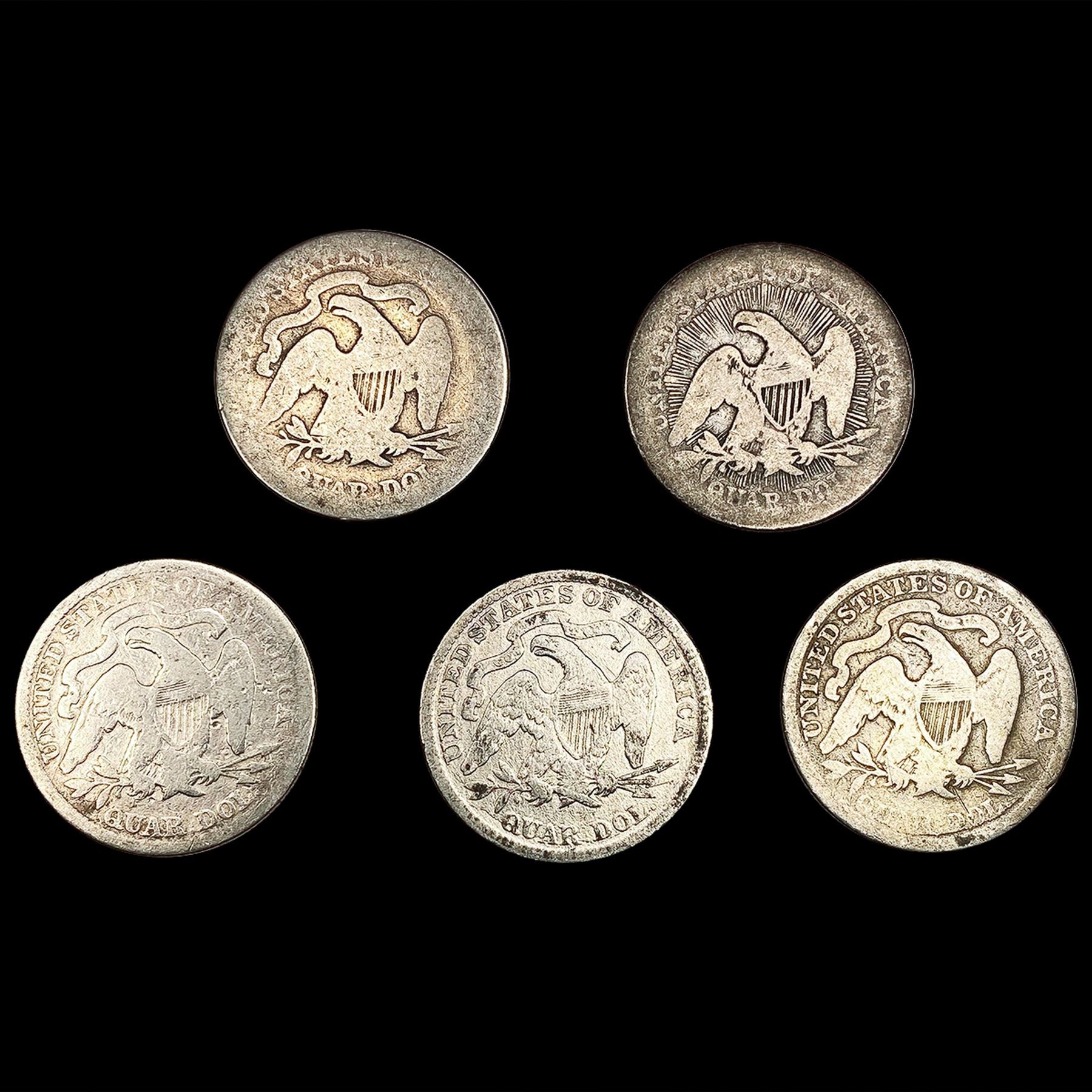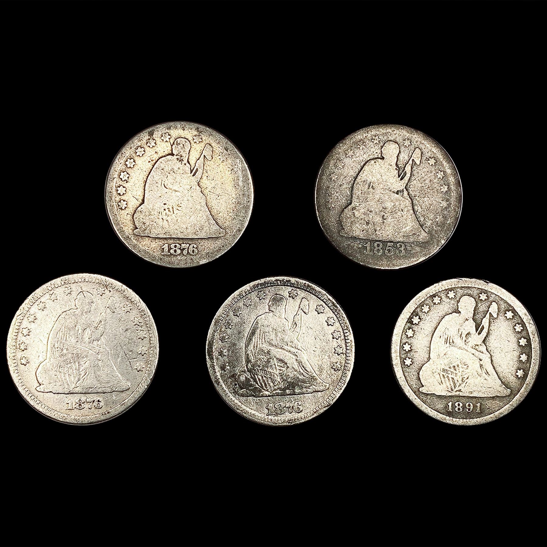(5) Seated Liberty Quarters (1853, (3) 1876, 1891)