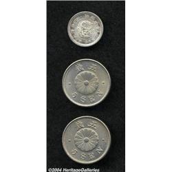 <B>5 Sen lot as Follows:</B></I> Meiji 10(1877), Type 2, KM-Y22, AU; Meiji 22 (1889), KM-Y19, BU; Meiji 23 (1890), KM-Y19, Choice AU; Meiji 24 (1891), KM-Y19, Unc; and a Meiji 25 (1892), KM-Y19, Choice AU. 5 coins <BR><BR><B>Important notice:</B> Heritage usually auctions material at the rate of 200-250 lots per hour. On some occasions eBay Live bid software or the Internet may not be able to keep up with the pace of the auction. We recommend placing a realistic absentee bid now as insurance to avoid disappointment. Occasionally the auctioneer may eliminate or reject an eBay Live bid, and the auctioneer may also reopen a lot after the close of the eBay live bidding (usually because we missed an audience bid), and may reject your bid even if it shows you as the winning bidder. By bidding via eBay Live, you agree that Heritage may award the lot to another bidder at its sole discretion under the circumstances described above or any other reasonable circumstances. Since eBay bids are not shown to us until we open the lot on the floor, we treat those bids just like floor bids. In most cases the floor responds before the eBay bid is presented to us, due to Internet lag time, so for consistency we have made it a policy that floor bids are always considered first over tie eBay live bids. Also please note that all Heritage lots purchased through eBay Live carry a 20% Buyer's Premium. Please make sure you read the Terms and Conditions before you bid.