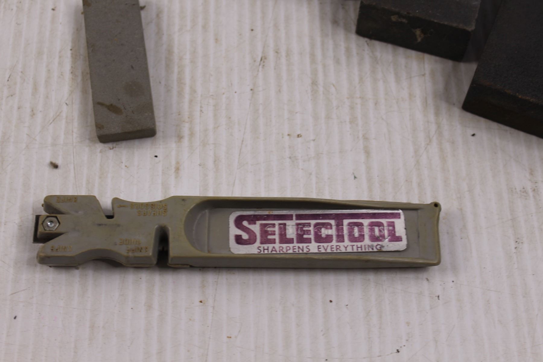 (5) Sharpening Wet Stones of Varying Sizes/Grit & Selectool Sharpener