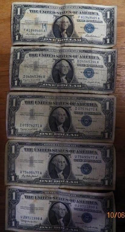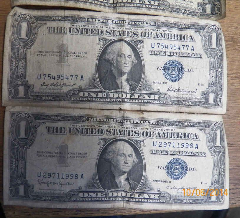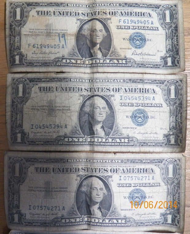 2-1957 Blue Seal Silver Certificates, 2-1957A Blue Seals & 1-1957B Blue Seal