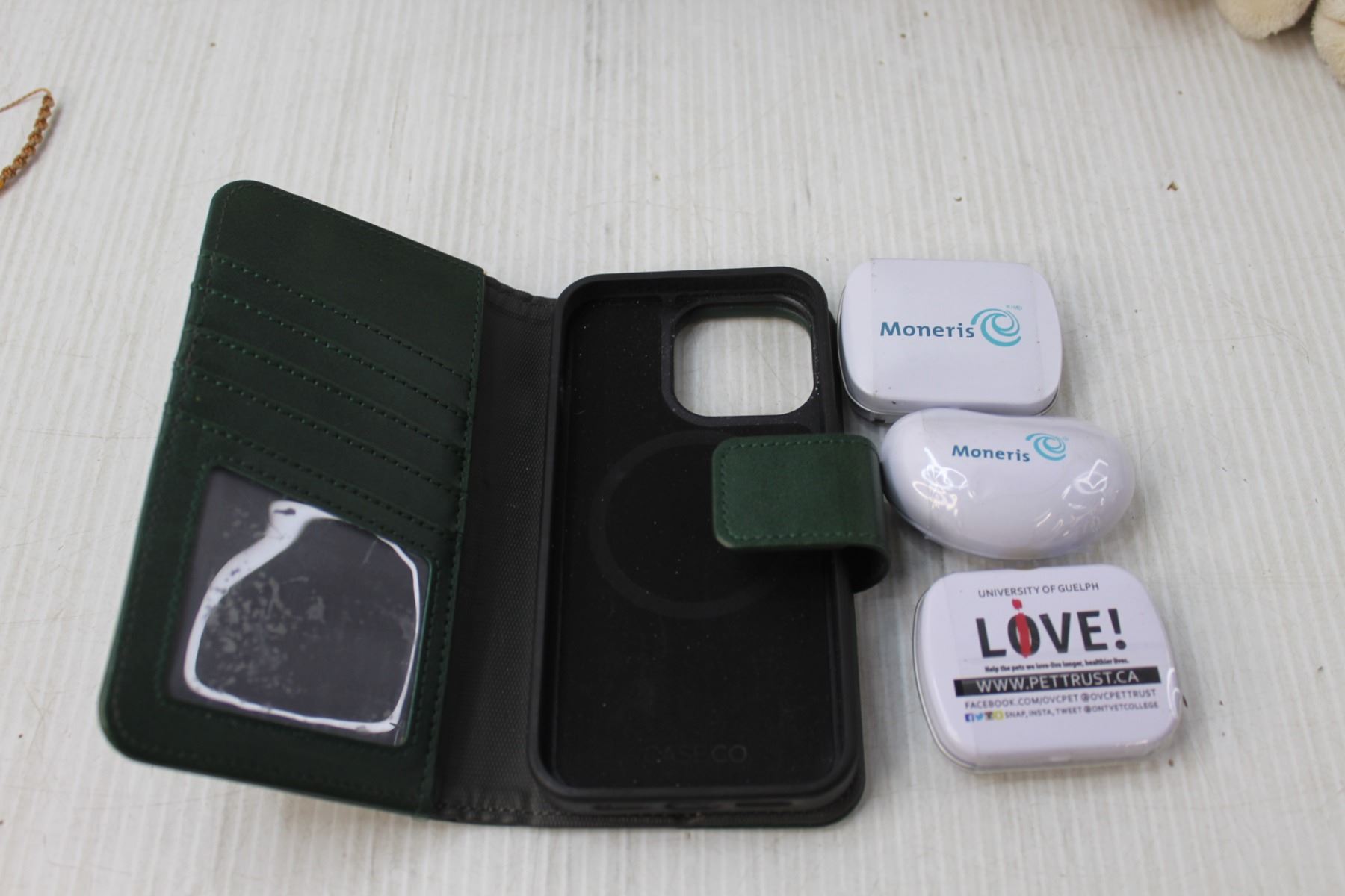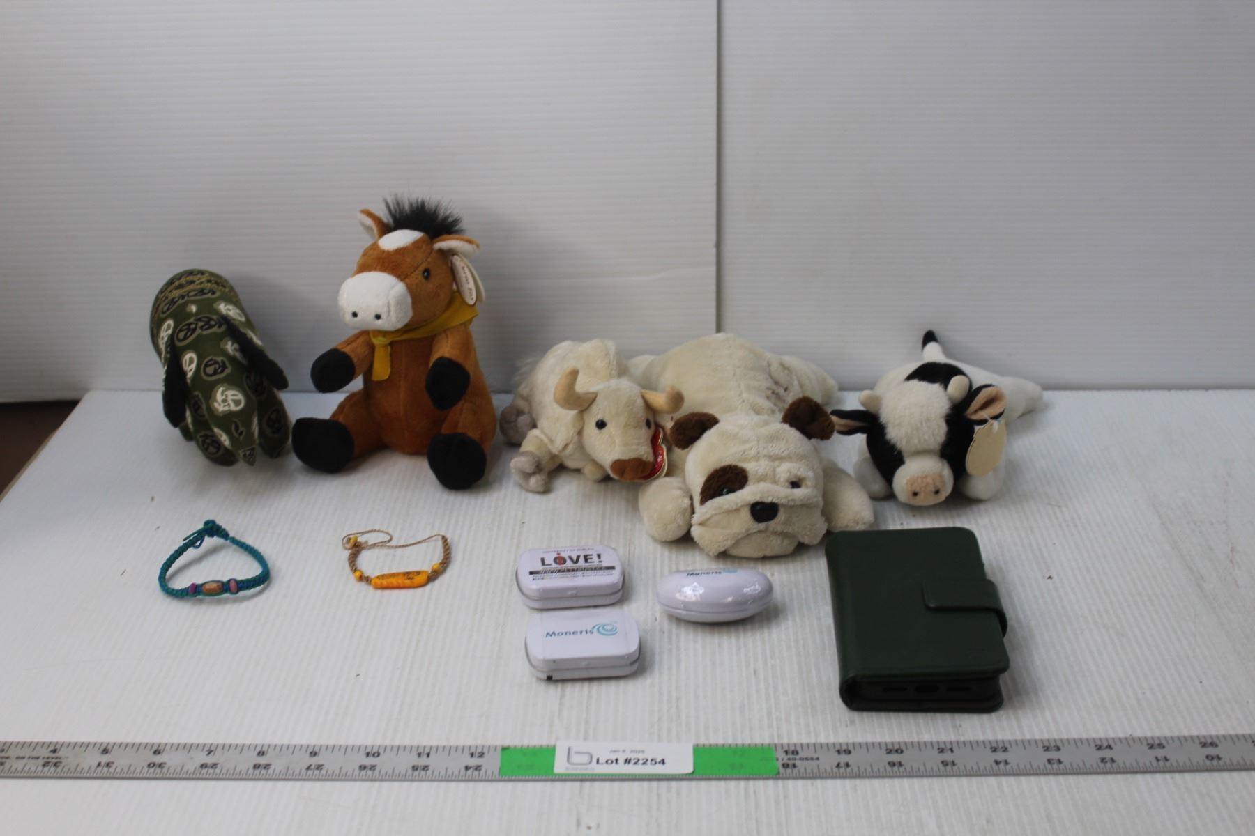 (5) Small Stuffies- Beanie Babies, Misc., (3) Sealed Containers of Mints, Phone Case, (2) Bracelets
