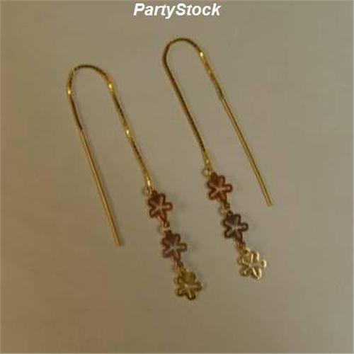 5 inch, solid 14K Gold (Rose, White & Yellow) adjustable "Threader" earrings are adjustable! Can be worn at lengths from 2.5 to 3.5 inches long. They hang in front of AND BEHIND the earlobe for a sexy, different look. This pair has 3 Flower pendants dropping from the chain: a white gold, yellow gold and white gold one. Exquisite and versatile!
