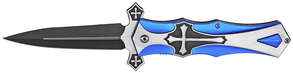 5" Spring Assist Cross Folding Knife - Blue