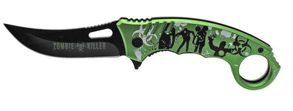 5" Spring Assist Zombie Killer Folding Knife - Green