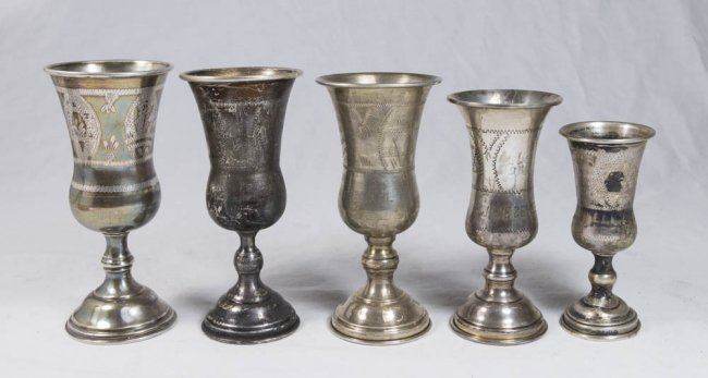 With etched designs. Approx. 11.06 ozt. Largest approx. 5 1/2" H.