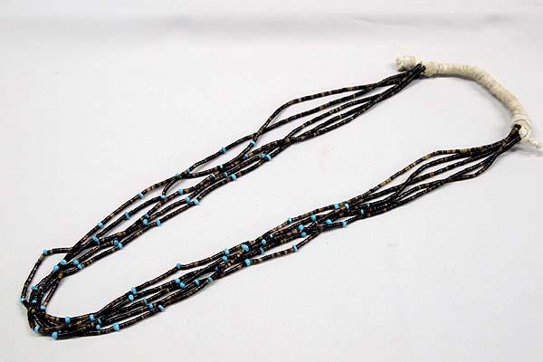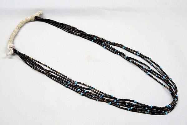 5 Strand Heishi Turquoise Necklace. Measures approx. 30'', string tied. Buyers Pay Actual Shipping and Handling Charges(see terms and conditions for more information).