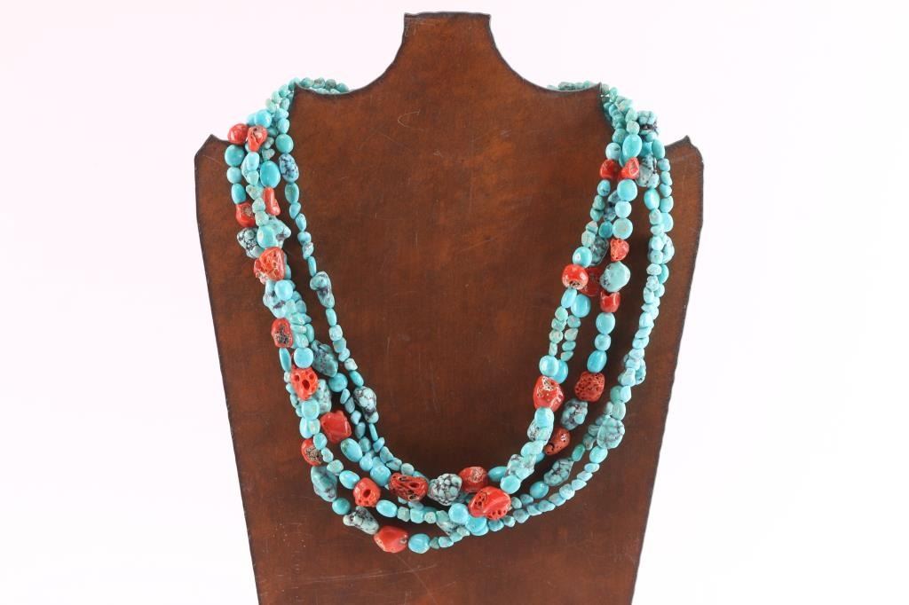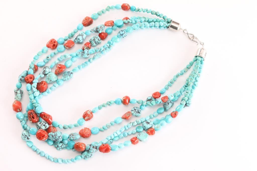 With sterling silver clasp, maker marked. Measures 20" from drop.