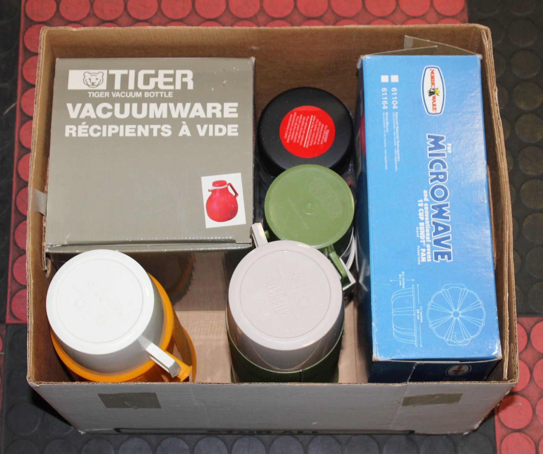 5 THERMOS, MICROWAVE BUNDT PAN