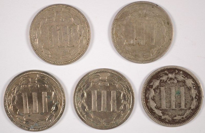(5) THREE CENT NICKELS (65, 70, 72, 73, 76)