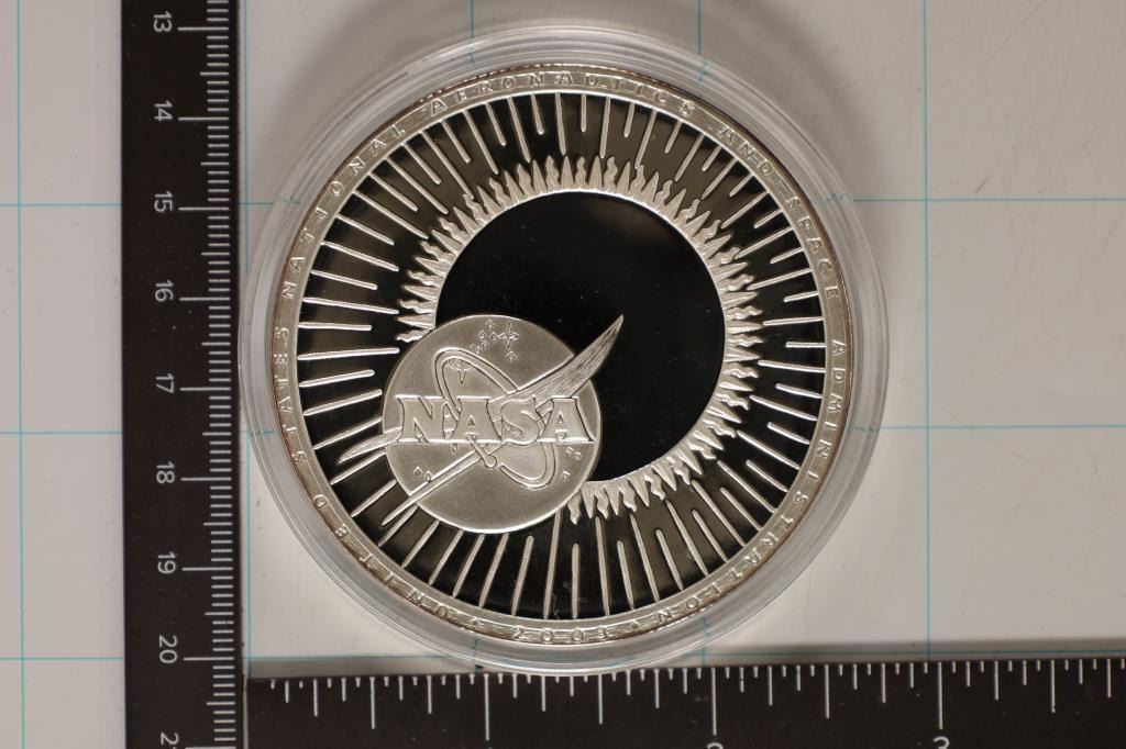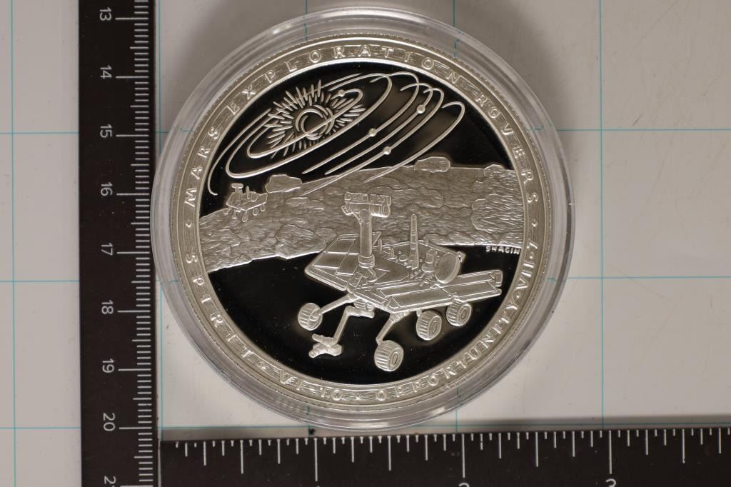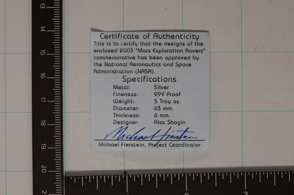 EXPLORATION ROVER COMMEMORATIVE APPROVED BY NASA IN HARD PLASTIC CAPSULE AND VELVET BAG WITH CERTIFICATE HAND SIGNED BY PROJECT COORDINATOR, EDGE MARKED WITH A SILVER WEIGHT