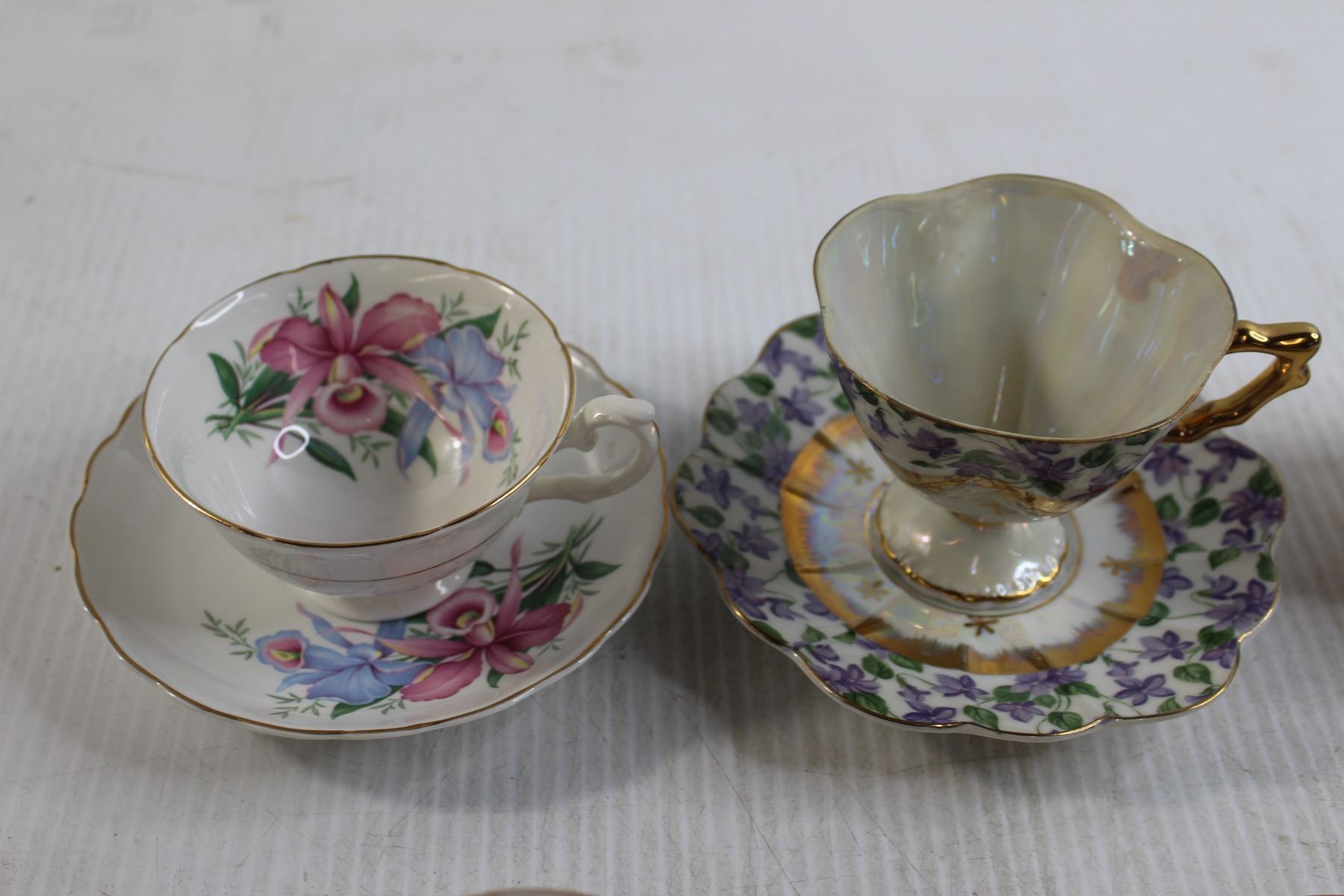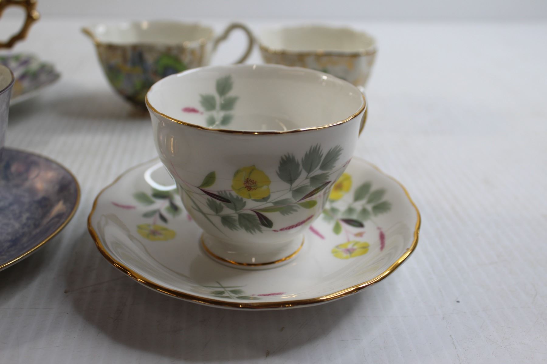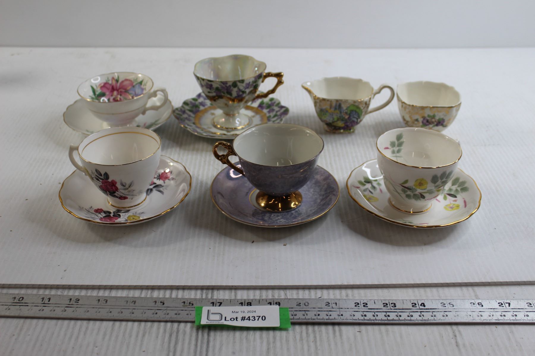 (5) Teacups and Saucers - Stanford, Royal Vale; Cream and Sugar Set