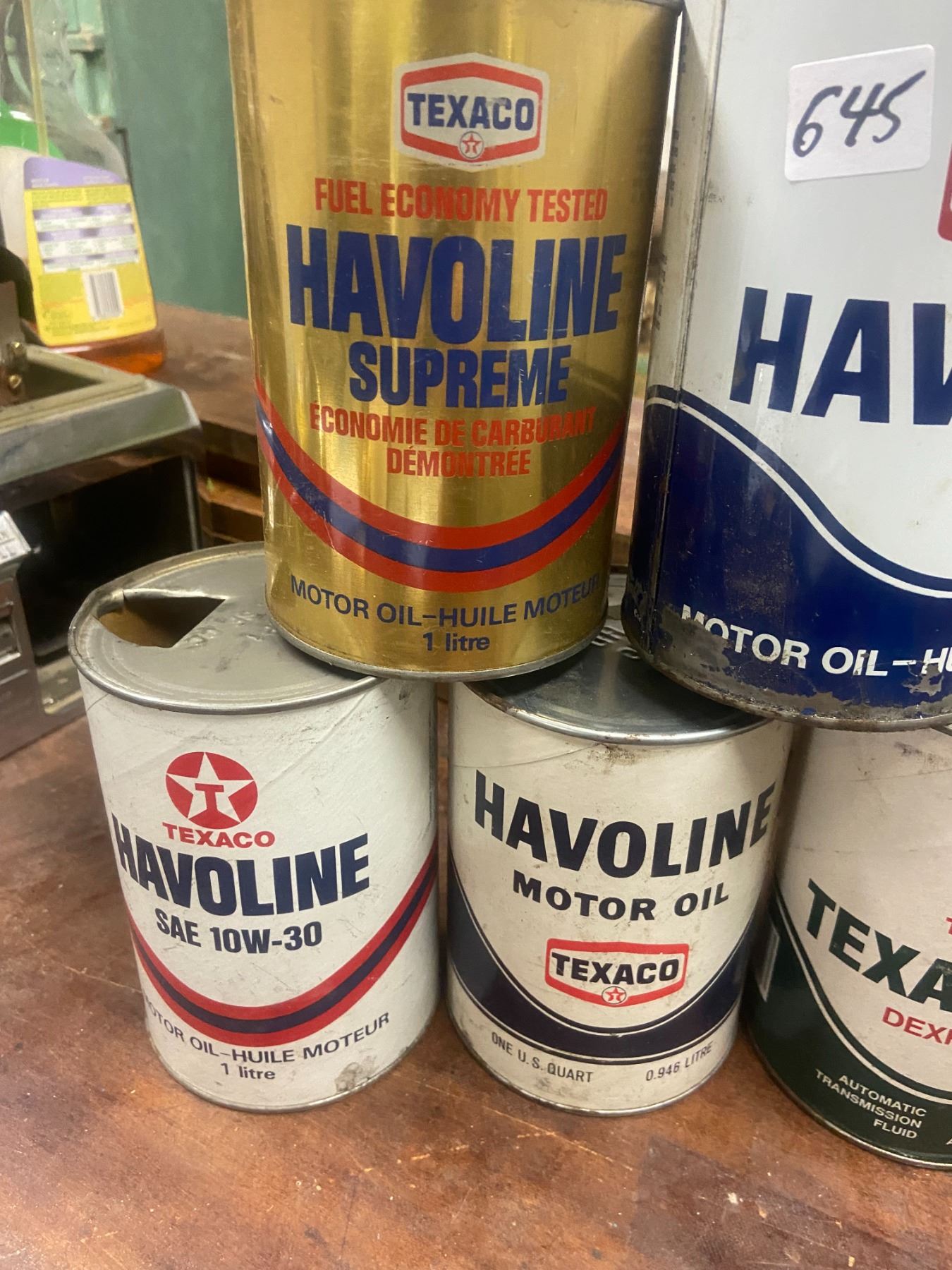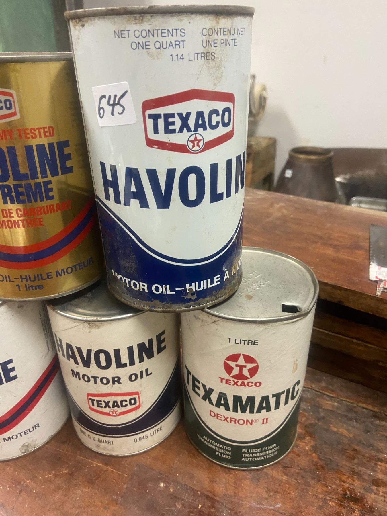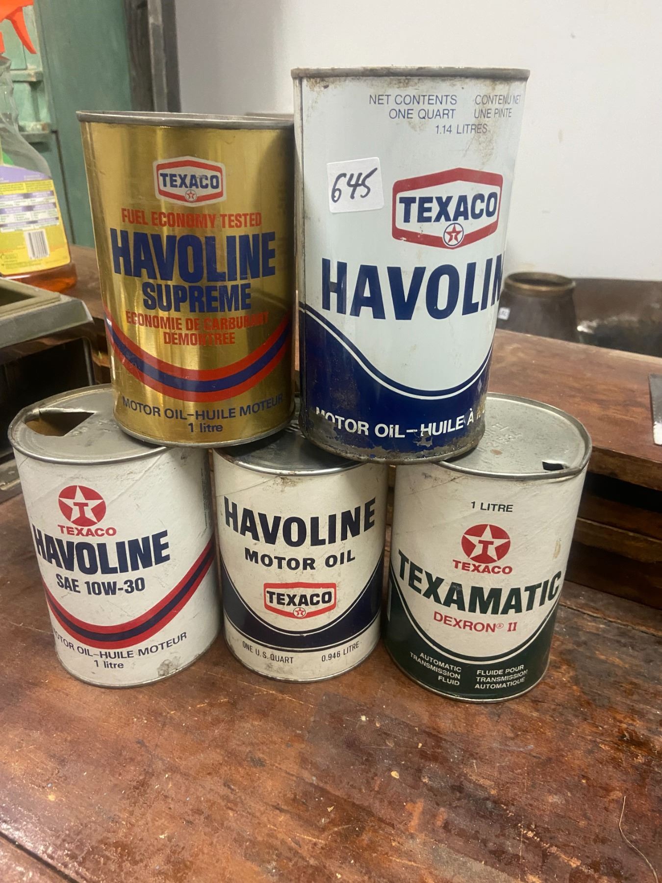 5 Texaco oil tins