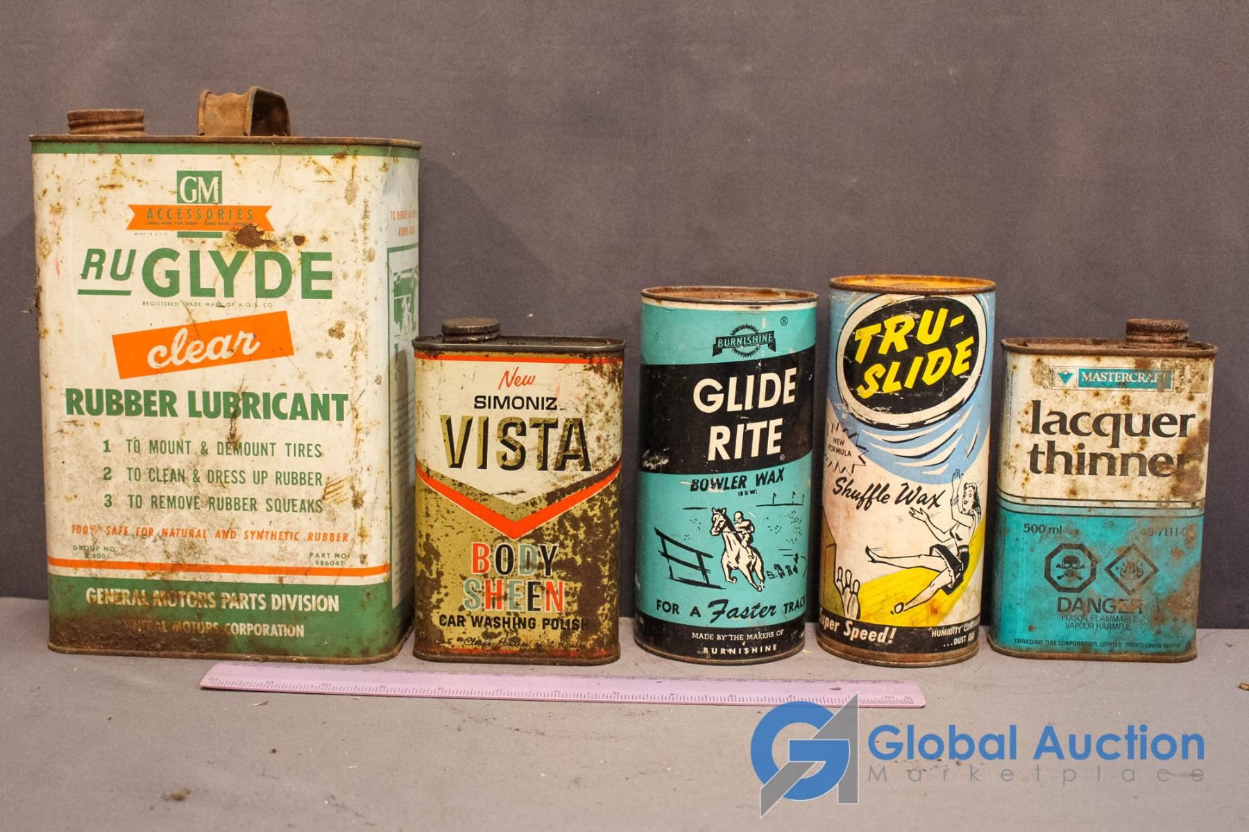 (5) Tins (Thinner, Rubber Lubricant, Bowler Wax, Shuffle Wax, 3 w/Contents)