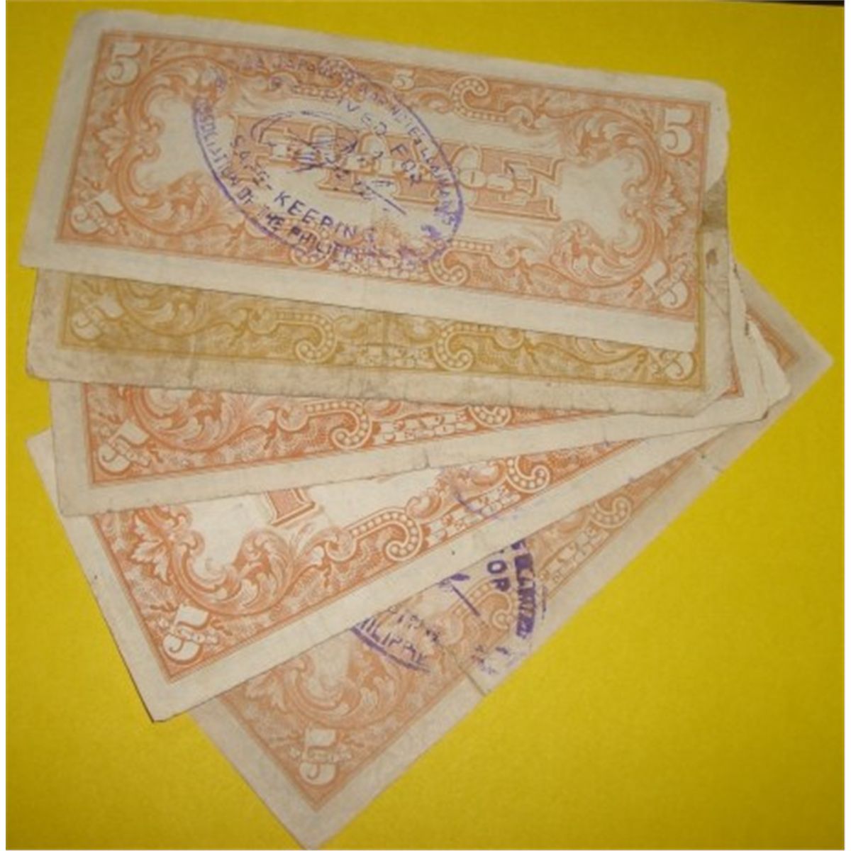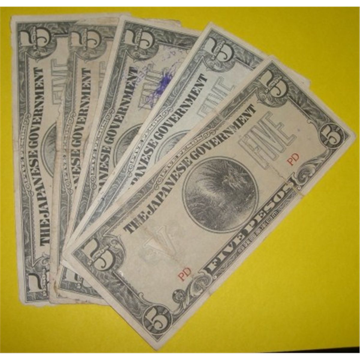 5 Total $5 Five Pesos World War II Japanese Occupational Currency ALL FOR 1 MONEY!! ***Coin & Currency Grades, Conditions & Values are not Safe Deposit Coins Responsibilty. Grades, Conditions & Values are determined by Consigner(s) & Buyers***