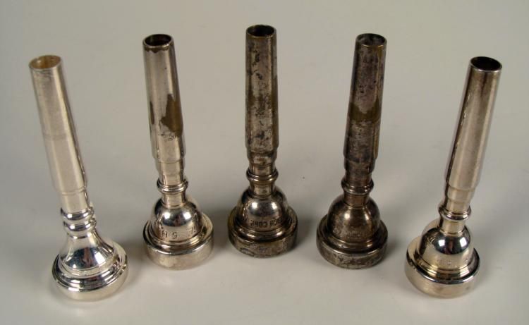 Here are 5 different trumpet mouthpieces from various makers, including some vintage. They are used but in very good condition, some with minor wear and tarnishing. * These include: * Jupiter 1.5C Blessing 1 1/2CBenge 5B Vincent Bach 7C Vincent Bach 7C * This is a nice variety of mouthpieces.