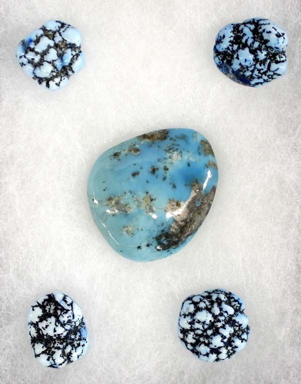 5 Turquoise Cabochons, includes 4 Sea Foam and 1 Red Mountain, largest measures 1.25'' x 1'', 84.8 carats total wt.
