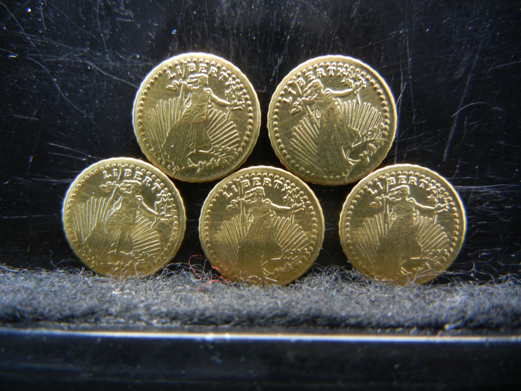 5 Twenty Dollar Mini St Gaudens Replica Coins (Not Real Gold)
