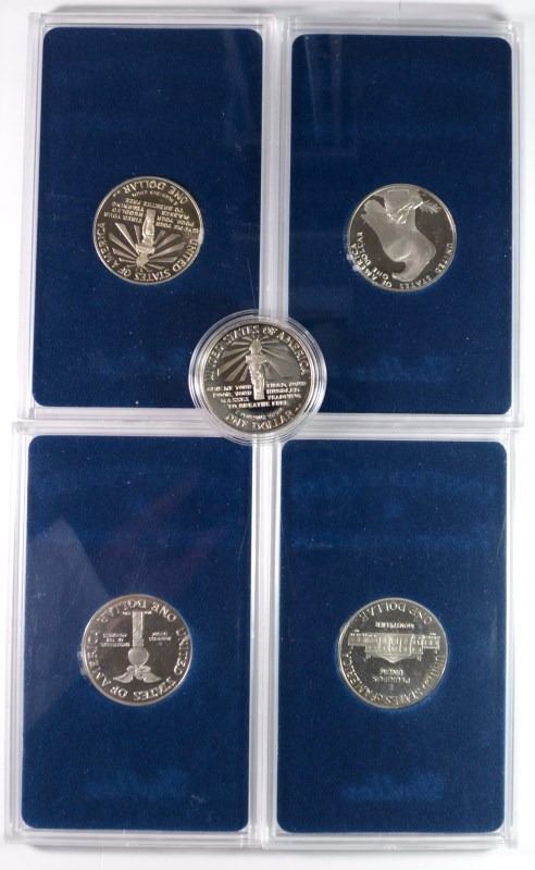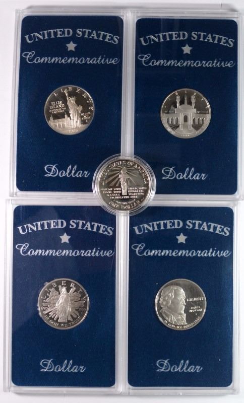 (5) U.S. COMMEM. SILVER DOLLARS NO BOX/COA: 2-1986 ELLIS ISLAND, 1993 MADISON/