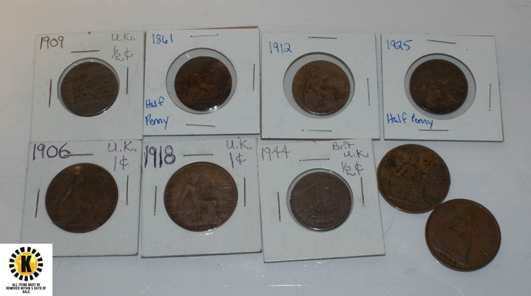 5 UK 1/2 PENNIES & 4 UK PENNIES