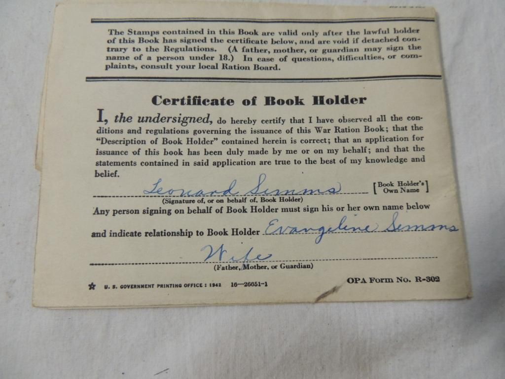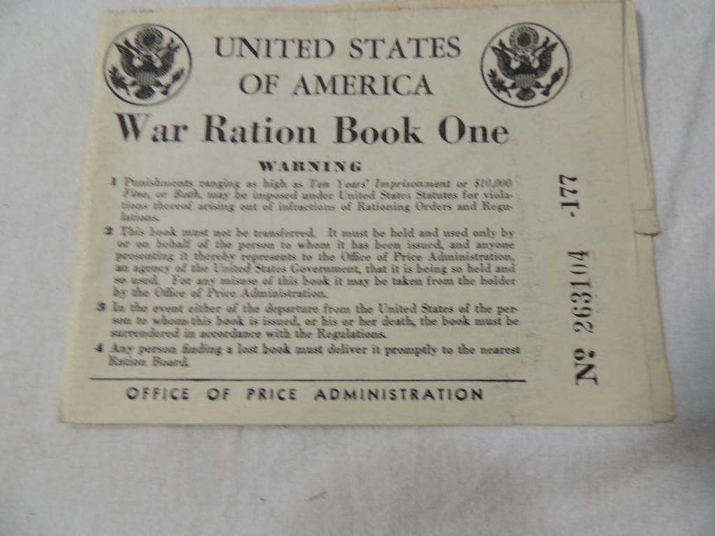 UNITED STATES OF AMERICA WAR RATION BOOK ONE. OFFICE OF PRICE ADMINISTRATION. WINNEBAGO COUNTY. FAMILY WORLD WAR AS SHOWN SEE PHOTO FOR MORE DETAILS.