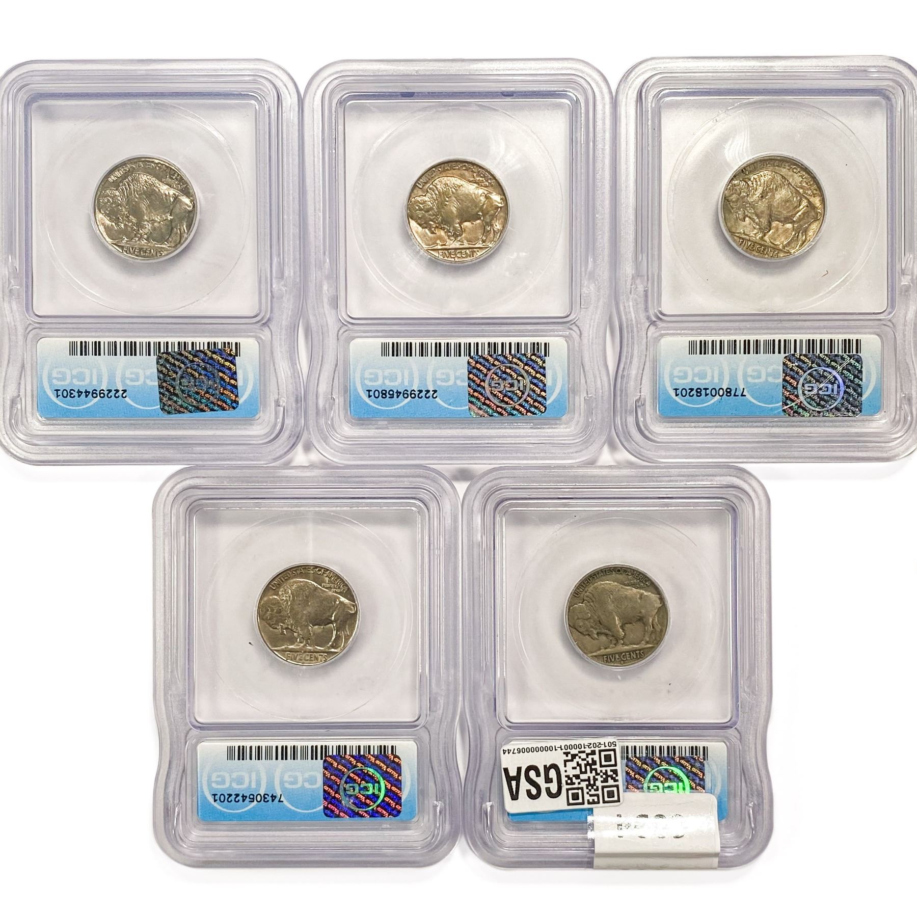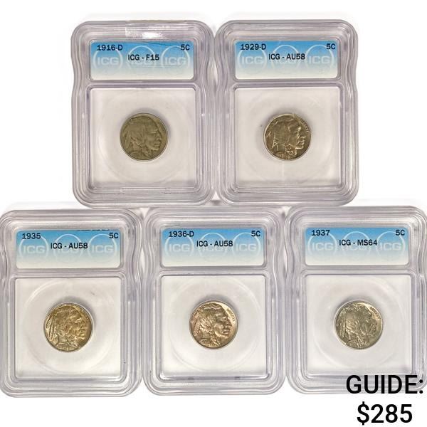 (5) US Buffalo Nickels ICG (1916-D, 1929-D, 1935,