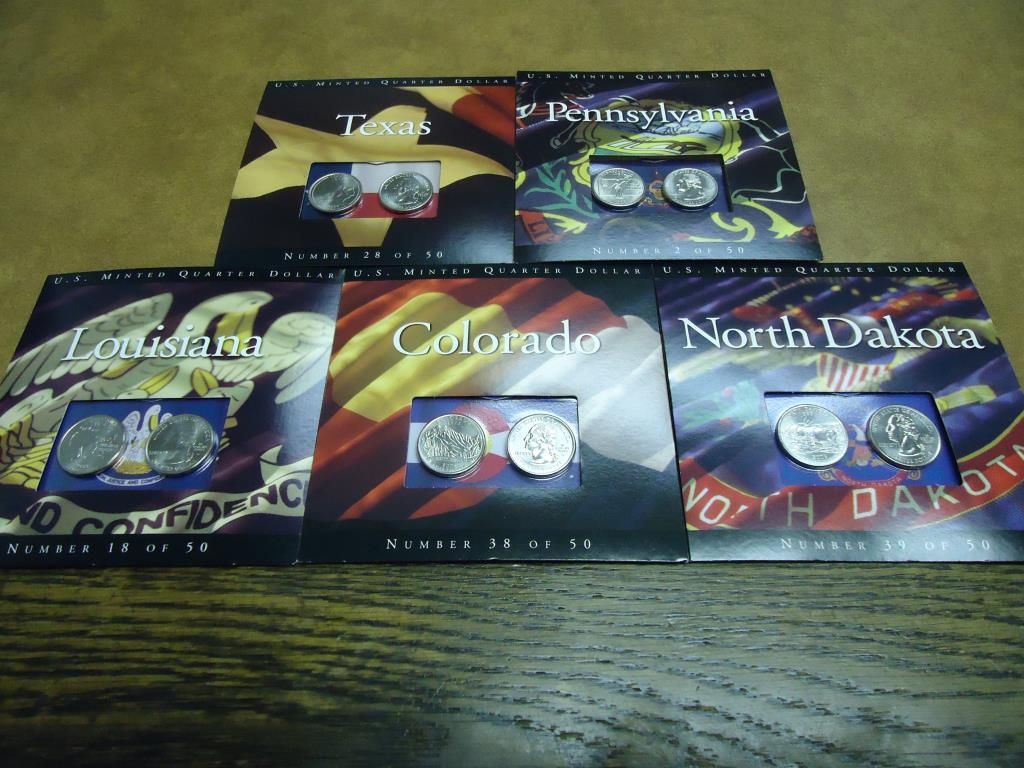 2006 COLORADO, 2002 LOUISIANA, 2006 NORTH DAKOTA, 1999 PENNSYLVANIA AND 2004 TEXAS, ORIGINAL US MINT PACKAGING