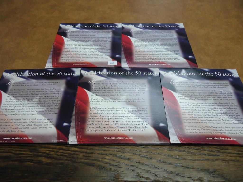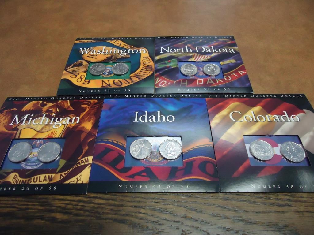 2006 COLORADO, 2007 IDAHO, 2004 MICHIGAN, 2006 NORTH DAKOTA AND 2007 WASHINGTON, ORIGINAL US MINT PACKAGING