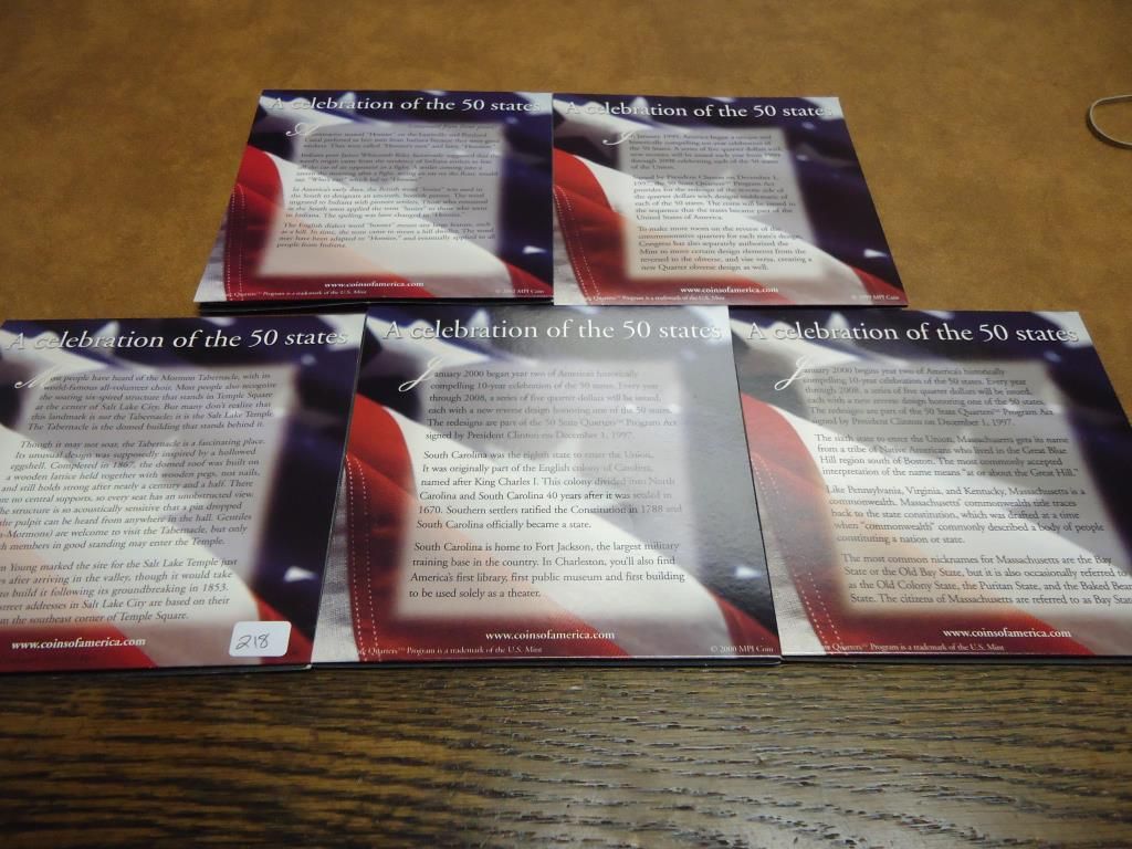 1999 GEORGIA, 2002 INDIANA, 2000 MASSACHUSETTS, 2000 SOUTH CAROLINA AND 2007 UTAH, ORIGINAL US MINT PACKAGING