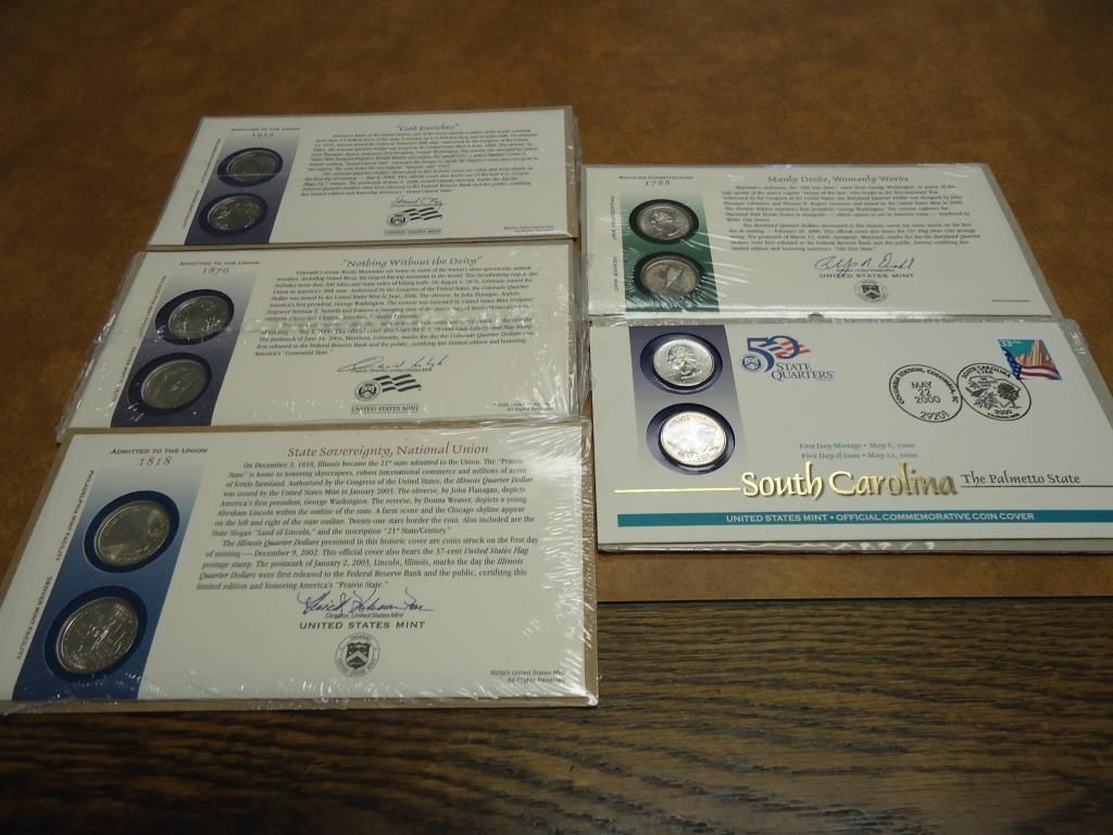 2000 SOUTH CAROLINA, 2000 MARYLAND, 2003 ILLINOIS, 2006 COLORADO AND 2008 ARIZONA, ORIGINAL US MINT PACKAGING