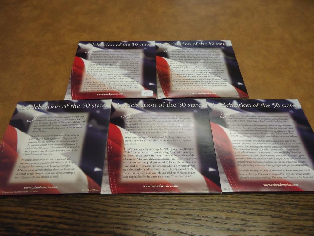 2006 COLORADO, 1999 DELAWARE, 2007 IDAHO, 2007 MONTANA AND 2007 UTAH, ORIGINAL US MINT PACKAGING