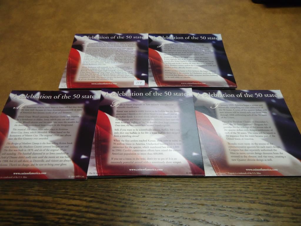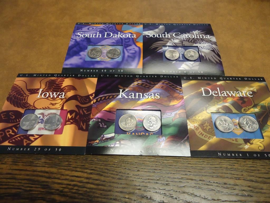 1999 DELAWARE, 2004 IOWA, 2005 KANSAS, 2000 SOUTH CAROLINA AND 2006 SOUTH DAKOTA, ORIGINAL US MINT PACKAGING