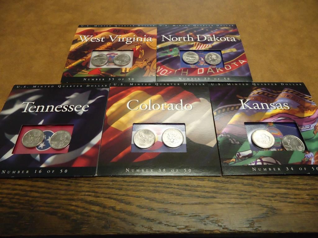 COLORADO, 2005 KANSAS, 2006 NORTH DAKOTA, 2002 TENNESSEE AND 2005 WEST VIRGINIA, ORIGINAL US MINT PACKAGING